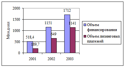 Рисунок 1.4 – Соотношение объемов лизинговых платежей и профинансированных средств в 2001–2003 гг.