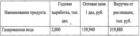 Таблица 20 — Расчет выручки от реализации газированной воды