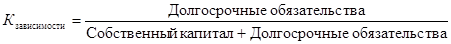 При анализе долгосрочного капитала (включает собственный капитал и долгосрочные обязательства) целесообразно оценить, в какой степени предприятие зависит от долгосрочных кредитов и займов. С этой целью и рассчитывается коэффициент зависимости от долгосрочных заемных источников финансирования. При этом из рассмотрения исключаются текущие пассивы, и все внимание сосредоточивается на стабильных источниках капитала и их соотношении.