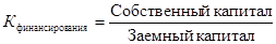 Если величина коэффициента финансирования меньше 1 (большая часть имущества предприятия сформирована за счет заемных средств), то это может свидетельствовать об угрозе неплатежеспособности и нередко затрудняет возможность получения кредита.[1]