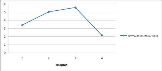 Коэффициент абсолютной ликвидности показывает, что предприятие абсолютно не в состоянии погасить свои краткосрочные обязательства. Данный коэффициент принимает в одном из кварталов нулевое значение. На данном предприятии значение показателя ниже рекомендуемого, что говорит о нехватке предприятию денежных средств для покрытия краткосрочных обязательств.