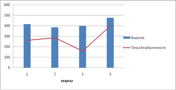 Рисунок 2.8 – Уровень выручки и точки безубыточности ООО "ЭДЕМ"