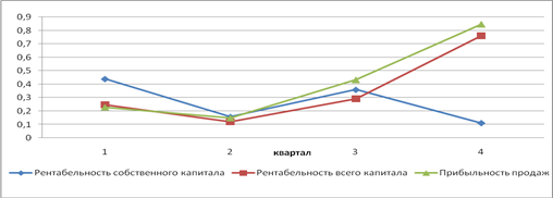 Рентабельность собственного капитала имела тенденцию к снижению во втором и четвертом квартале.