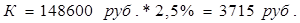 Пфс = 148600*0,0365 = 5423,9 руб.