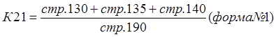 К16 = (стр. 290 - стр. 210 - стр. 220 + стр. 215) (форма N 1) / К1 (1.16)