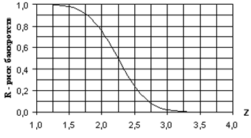 Вероятность банкротства или риск банкротства R определяют по графику (рисунок 1).