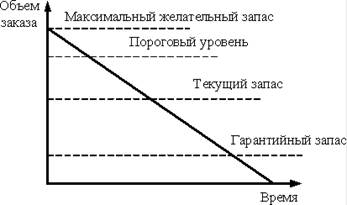 б) пороговый уровень запаса – используется для определения момента выдачи очередного заказа;