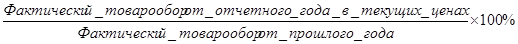 Итак, рассмотрим динамику показателя объема реализованной продукции. Товарооборот – это важнейший показатель торгового предприятия. Его можно рассматривать как результат деятельности предприятия торговли и от него зависит объем валового дохода и прибыли, характеризующей эффективность торговой деятельности. Динамика роста товарооборота в текущих ценах (Д) рассчитывается по формуле: