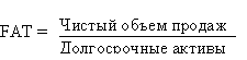 Коэффициент оборачиваемости основных средств (раз) - фондоотдача. Этот коэффициент характеризует эффективность использования предприятием имеющихся в распоряжении основных средств. Чем выше значение коэффициента, тем более эффективно предприятие использует основные средства. Низкий уровень фондоотдачи свидетельствует о недостаточном объеме продаж или о слишком высоком уровне капитальных вложений. Однако, значения данного коэффициента сильно отличаются друг от друга в различных отраслях. Также значение данного коэффициента сильно зависит от способов начисления амортизации и практики оценки стоимости активов. Таким образом может сложиться ситуация, что показатель оборачиваемости основных средств будет выше на предприятии, которое имеет изношенные основные средства. Рассчитывается по формуле: