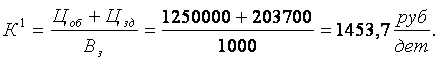 3. Удельные капитальные затраты на единицу продукции, | руб./дет. | 1453,7 |