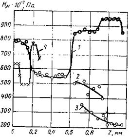 Микротвёрдость армко-железа Нm ≈ 4000 мПа. Следует отметить, что фронт расплавлений выражен не чётко.