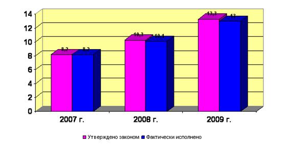 - на прикладные научные исследования: в 2007 г. – 3,3 млрд руб, в 2008 г. – 4,6 млрд руб, в 2009 г. – 5,6 млрд руб;