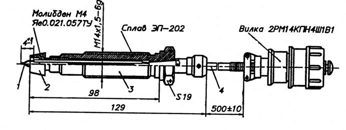 Чувствительным элементом датчика является открытая вольфрам-рениевая термопара с диаметром электродов 0,35 мм. Герметизация датчика и крепление чувствительного элемента в корпусе обеспечивается герметичным выводом из прессматериала ВЭП-1. Кабель датчика состоит из вольфрам-рениевых проводников, изолированных друг от друга и экранированных плетёнкой из нержавеющей стали.