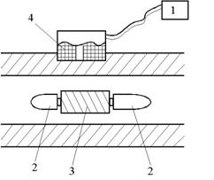 Турбинный расходомер состоит из 3-х основных элементов: турбинный первичный преобразователь расхода 3, вторичный преобразователь частоты вращения 4, регистрирующей измерительной системы 1, 2 - подшипник.