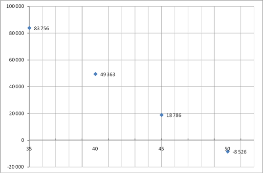 Внутренняя норма доходности составила приблизительно 48 %, что значительно выше принятого на предприятии нижнего порога рентабельности инвестирования (11 %), а значит, данный проект выдерживает тест на рентабельность вложения денежных средств. Инвестиционный проект имеет высокий запас прочности 48 % – 11 % = 37 %, следовательно, при всех изменениях во внешней и внутренней среде проект остается эффективным.