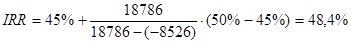 Более точное значение внутренней нормы доходности определим методом интерполяции: