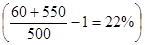 Например, за время владения владеет акцией номинальной стоимостью 500 руб. ее рыночный курс вырос до 550 руб. а дивиденды составили 60 руб. Тогда, доходность акции может быть спрогнозирована на уровне 22 %