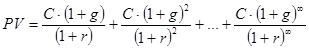 Предполагается, что базовая величина дивиденда С ежегодно увеличивается с темпом прироста j (может быть равен коэффициенту дисконтирования).