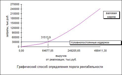 Порог рентабельности – это такой объем выручки от реализации при котором прибыль равна нулю, но предприятие полностью покрывает свои постоянные и переменные издержки.