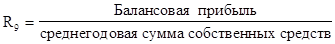 Рентабельность собственных средств показывает какая величина прибыли приходится на 1 рубль собственных средств, т.е. позволяет определить эффективность использования собственных средств предприятия и сравнить ее с возможным доходом от вложения этих средств в другие объекты (ценные бумаги, другие предприятия и т.д.). В западных странах этот показатель служит важным критерием при оценки уровня котировки акций на фондовой бирже. Рентабельность собственного капитала вычисляется по формулам