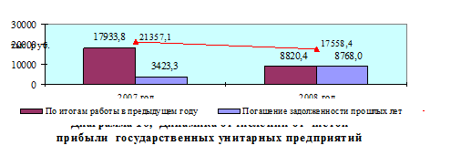 Часть чистой прибыли по итогам работы в 2007 году перечислили 15 ГУП на сумму 9 млн. рублей.