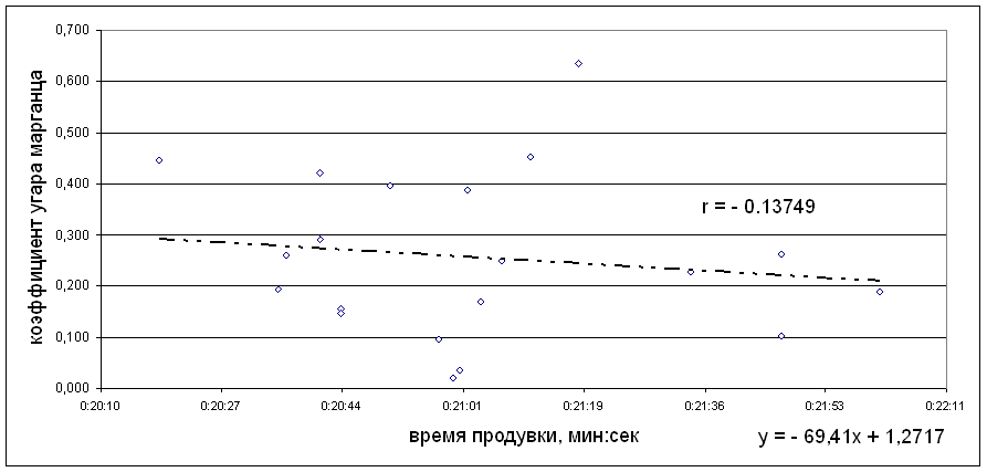 Рисунок 5.35 - Зависимость коэффициента угара марганца от времени продувки, мин:сек