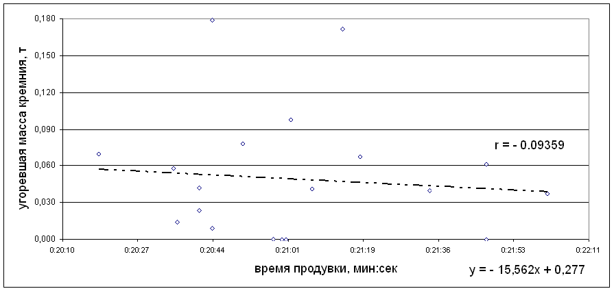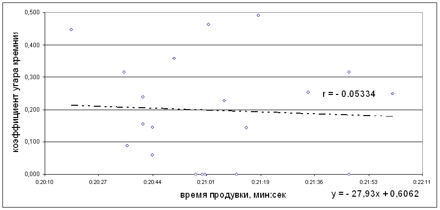Рисунок 5.36 - Зависимость коэффициента угара кремния от времени продувки, мин:сек