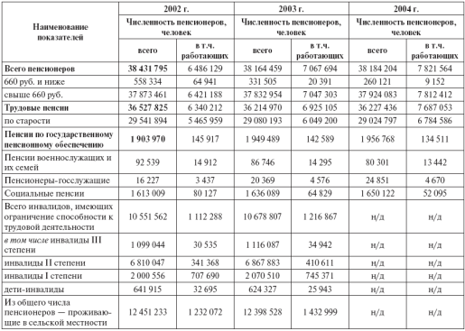 Прежде чем обратиться к анализу ситуации в пенсионной сфере в 2002–2004 гг., отметим некоторые существующие ограничения. К сожалению, приходится констатировать, что деятельность ПФ продолжает оставаться малопрозрачной со статистической и методической точек зрения [12, с.18].
