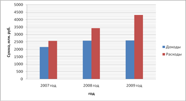 Рисунок 2.1 – Динамика доходов и расходов УПФР в 2007-2009 гг.