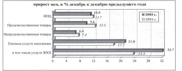 Вместе с тем уровень инфляции в 2005 году превысил целевой уровень в 8.5%, установленный Федеральным законом о бюджете