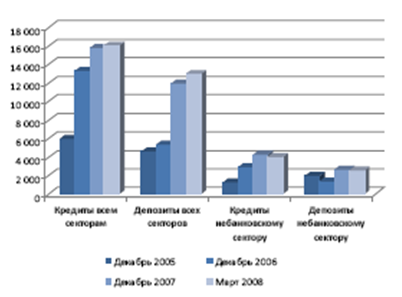 Рисунок 33. Внутреннее кредитование в 2006-2008 годах, млрд. тг.