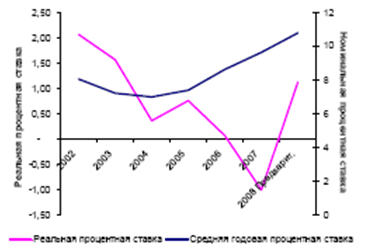 Рисунок 30. Эволюция номинальной и реальной процентных ставок