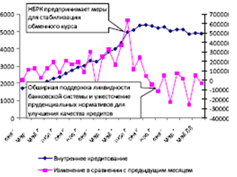 Эта мера в период финансового кризиса выигрывает по сравнению с начальным рекомендациям МВФ по преодолению финансового кризиса в странах Юго-Восточной Азии, которые повлекли за собой сокращение налогообложения для восстановления доверия к финансовой системе и недооценили значение снижения обменного курса, влияющего на незащищённые активы. Эти уроки недавнего прошлого были хорошо усвоены. Более того, некоторые меры НБРК могут в 2008 году могут быть узнаны в ряде развитых экономик, поражённых кризисом sub-prime: после некоторой паузы, власти в этих странах также решили предоставлять ликвидность на беззалоговой основе и оказывать целевую финансовую поддержку уровня спроса частного сектора.