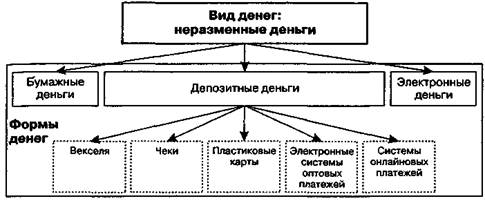 Неразменные деньги представляют собой денежные знаки, замещающие в обращении полноценные деньги и выступающие как знаки кредита. Можно выделить три основные формы неразменных денег: бумажные деньги (наличные деньги), выпускаемые правительством, депозит-, ные деньги, выпускаемые депозитными институтами, и электронные деньги, выпускаемые специализированными финансовыми институтами. Различия между ними носят целевой характер. Как правило, наличные и электронные деньги эмитируются для потребительских нужд. Депозитная эмиссия имеет иной характер: депозитные деньги даются на время для производственных нужд. Поэтому последствия эмиссий разных видов денег также различны.
