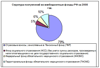 Диаграмма 3. Структура поступлений в основные внебюджетные фонды РФ в 2008 году.