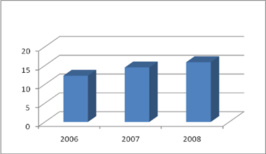 Рост объемов просроченной ссудной задолженности предприятий и организаций банковскому сектору растет на протяжении всего анализируемого периода. 2007 год принес рост данного показателя на уровне 12%, а в 2008 году он составил 13,5%.