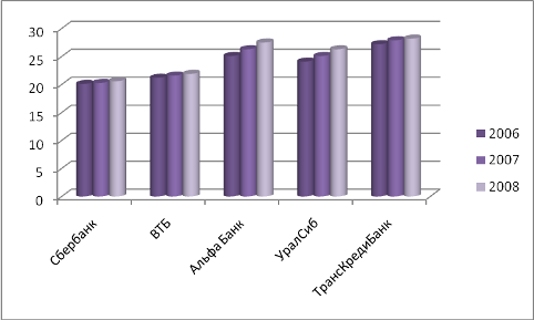 Так Сбербанк и ВТБ существенно не поменяли стоимость потребительских кредитов и в течение всего анализируемого периода увеличили их стоимость лишь на 0,9%. Самыми дорогими потребительскими кредитами отличился, Альфа Банк, который увеличил их стоимость в 2007 году на 12,3%, в 2008 году на 8,4%.