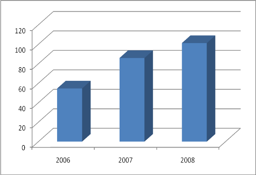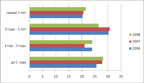 Так, кредиты, сроком в 3-5 лет в 2007 году подорожали на 8,9%, в 2008 году по сравнению с 2007 – на 9,6%. Кредиты, свыше 5 лет не такие подвижные как краткосрочные, однако так же дорожают с каждым годом.