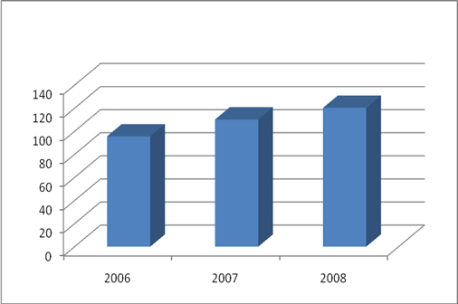 Как видно из рис.2.19, объем кредитования населения с каждым годом увеличивается. Так, в 2007 он увеличился на 6,9%, и продолжил свой рост в 2008 году на 7,9%. Рост объемов кредитования населения связан с повышением благосостоянием населения, и как следствие с повышением кредито и платежеспособности населения Иркутской области.
