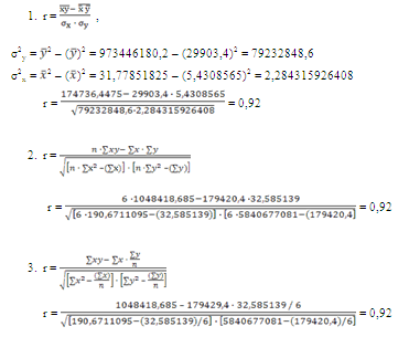 Из расчетов следует, что результат по всем формулам получился одинаковый, а так как он входит в интервал 0 < r < 1 и приближен к единице до 0,92, следовательно существует сильная прямая зависимость между исследуемыми явлениями. Данная зависимость говорит о вероятности, что при увеличении параметра x (доход бюджета города Ижевска), параметр y (ВВП РФ) также увеличится.