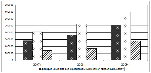 Таблица 7 – Анализ поступления налогов в бюджеты различных уровней в 2007–2009 гг., тыс. руб.
