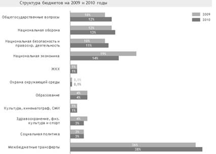 Структура расходов федерального бюджета утверждена только на 2010 год. Приоритетными направлениями расходования бюджетных средств являются выполнение социальных обязательств, а также создание условий для посткризисного восстановления и развития экономики.