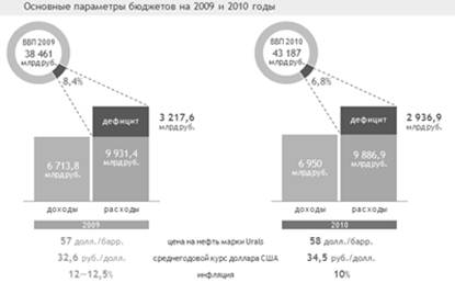 Предусматривается снижение объема расходов Федерального бюджета с 25,5 % ВВП в 2009 году до 22,9 % в 2010 г ., 19,5 % и 18% в последующие годы. С учетом инфляции, понижение жизненного уровня неизбежно. [10]