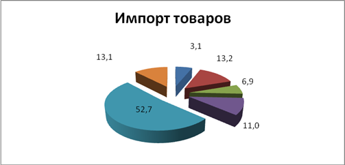 Оценивая структуру российского импорта в целом, следует отметить, что она выглядит прогрессивно: лидируют здесь машины, оборудование, химические продукты. Российские корпорации сегодня в значительных объемах импортируют европейское и американское оборудование для добычи минеральных ресурсов, строительную технику, грузовые и легковые автомобили, медицинское оборудование, компьютеры, комплектующие для их производства и офисное оборудование. Вместе с тем, высокий удельный вес продовольствия и сельскохозяйственного сырья в российском импорте создает определенные угрозы экономической безопасности страны.