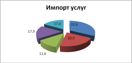 Импорт услуг равнялся 76,3 млрд долл (в 2007 году- 59,1 млрд долл). В его структуре наибольший удельный вес занимали услуги, связанные с поездками российских граждан за границу (32,6%), деловые, профессиональные и технические услуги (18,9 %), а также транспортные услуги (17,0%).