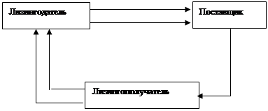 Классической лизинговой операции, как уже отмечалось, свойственно взаимодействие трех сторон: лизингодателя, лизингополучатсля и поставщика (продавца) имущества. По заявке лизингополучателя лизингодатель приобретает у поставщика необходимое имущество и передает его в пользование лизингополучателю. Лизингодатель возмещает свои финансовые затраты через лизинговые платежи, которые ему выплачивает лизингополучатель (рис. 2).