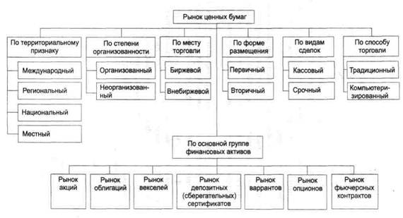 Имеются различные классификационные признаки рынков ценных бумаг. Остановимся на самых распространенных (рис. 2.1).
