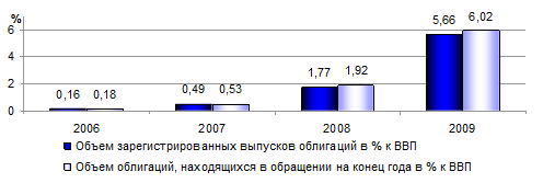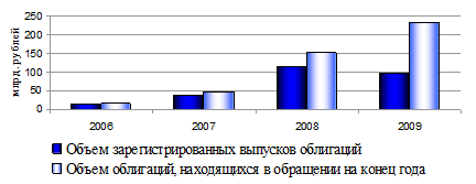 В 2009 году благодаря созданию законодательной базы, способствующей развитию новых финансовых инструментов, в частности биржевых облигаций, выпуск которых осуществляется без государственной регистрации, произошло снижение выпусков корпоративных облигаций, эмитированных на общих основаниях сроком обращения до 1 года.