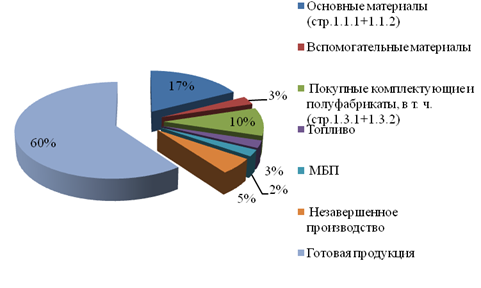 По результатам расчета потребности в оборотных активах при 100 % использовании производственной мощности строится круговая диаграмма, характеризующая структуру нормируемой части оборотных активов. Примерная схема приведена на рис. 1.2.