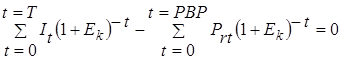 Динамичный период возврата (динамичный срок окупаемости) инвестиций (РВР) характеризует временной отрезок, в течение которого инвестиции вместе с платой за их использование на уровне барьерной ставки будут возвращены за счет чистого дохода. Инвестиции эффективны, если РВР £ Т.